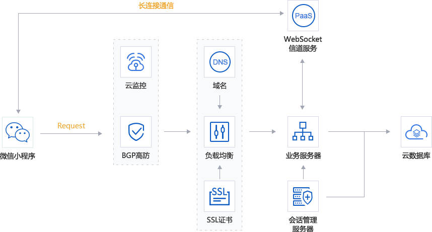 針對小程序技術(shù)特性設(shè)計,原生支持HTTPS,基于互聯(lián)在線的云計算基礎(chǔ)提供WebSocket服務(wù),輕松應(yīng)對高并發(fā)
