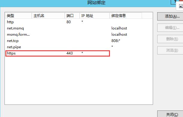 添加網(wǎng)站綁定內(nèi)容:選擇類型為https,端口443和指定對應(yīng)的SSL證書,點擊確定